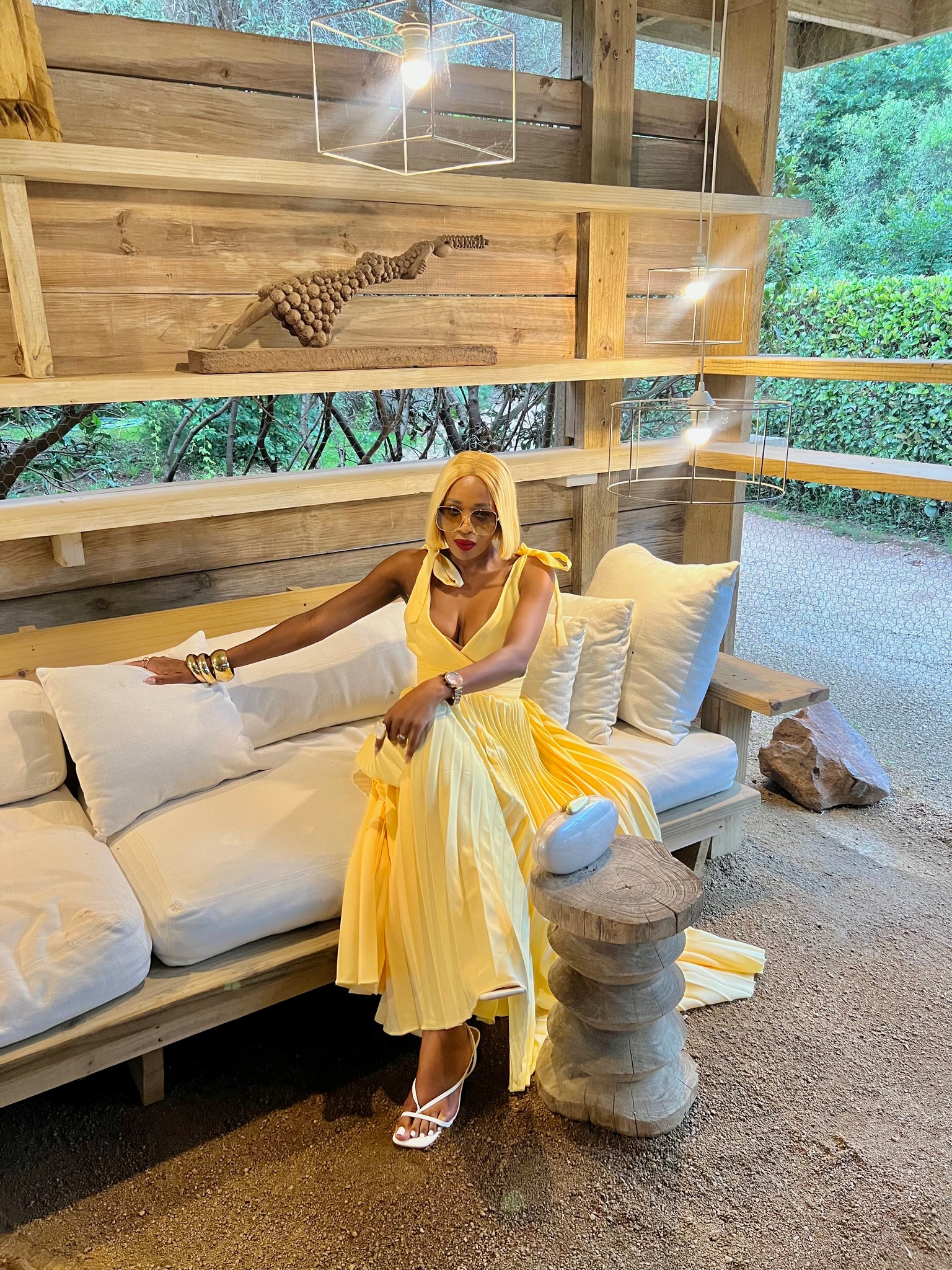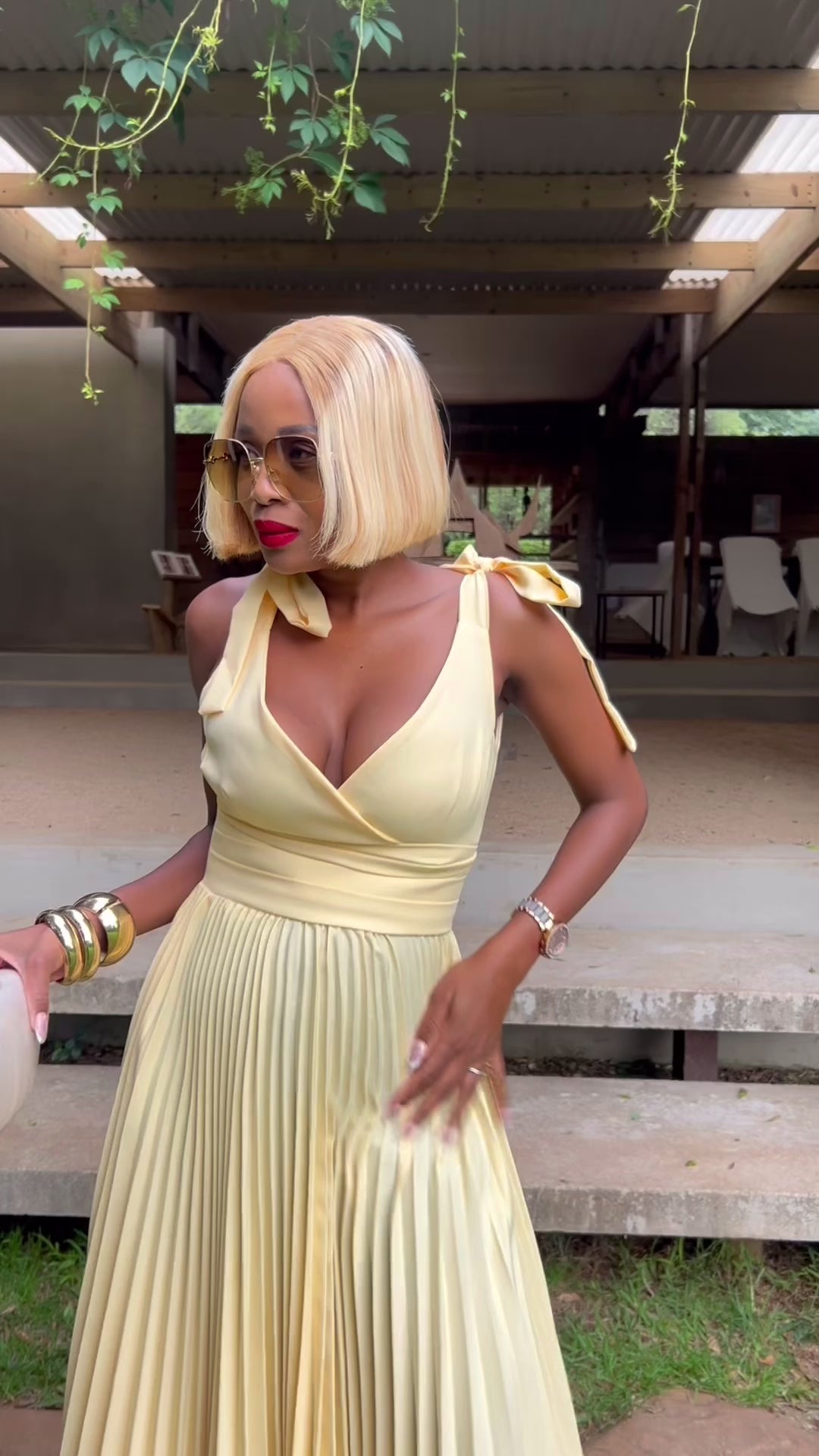 Make a bold entrance this season with our gorgeous butter yellow pleated dress, a true statement piece for all celebrations. Designed with a halter-neck neckline and a cinched waist…crafted with so much love!