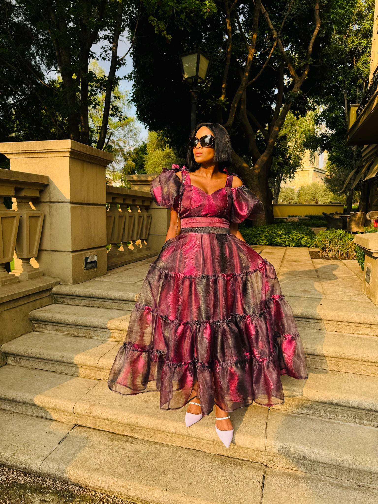 Step into timeless elegance with the Plum Amber — a showstopping organza dress that commands attention with every twirl. Crafted from luxurious sheer orgaza fabric with soft hints of plum and mauve hues , this dress is a celebration of opulence and strength.